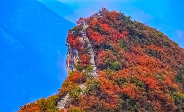 游览完神女天路景区,我们前往文峰观(大家根据体力及总体时间),在这里,您可以俯瞰整个巫山县城,一路上更是红叶满山,登高绝顶望一片红叶遍布;