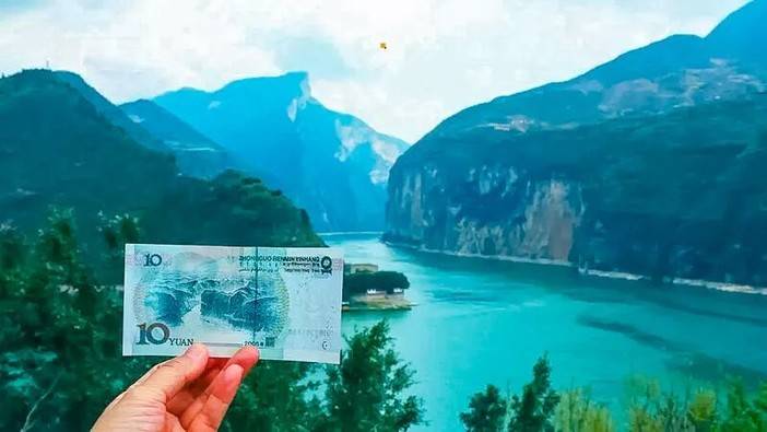 打卡十元人民币背面图案、白帝城、世界上最大水电站等