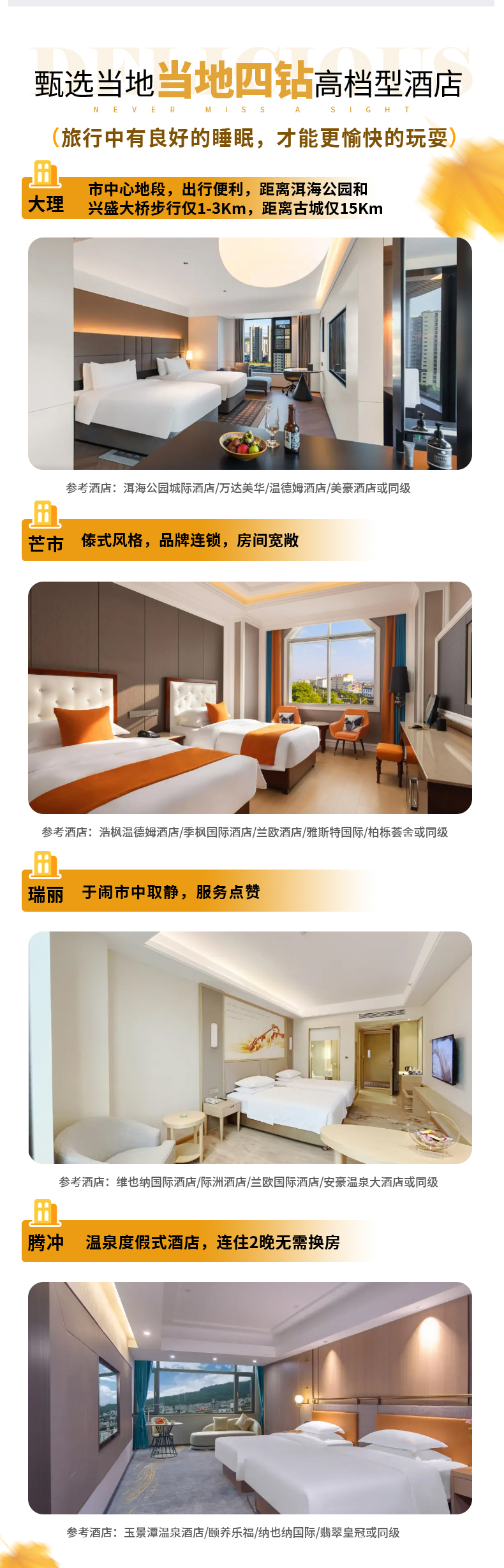 ▷住宿:芒市网评四钻高档型酒店;
