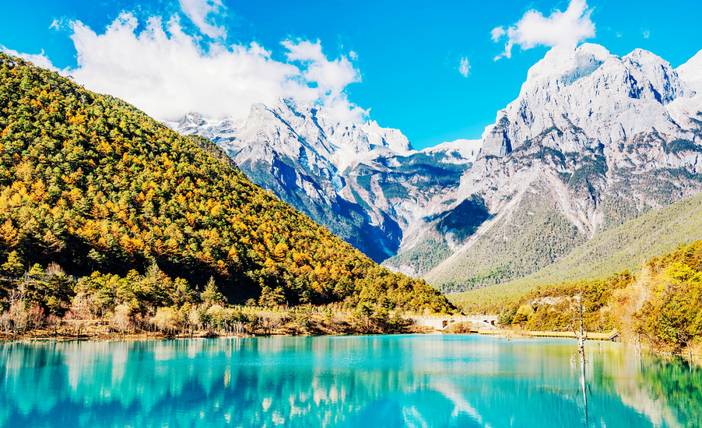 早餐后前往丽江国家5A【玉龙雪山】,约1小时抵达丽江玉龙雪山风景区。进入高原牧场甘海子,游览甘海子后我们在景区内用午餐。中餐后乘索道到达【云杉坪】。又名殉情谷,本地人称之为玉龙雪山第三国度。海拔约3240米,一块隐藏在原始云杉林中的巨大草坪,在此观赏玉龙雪山是最佳位置。随后游览【蓝月谷】景区的玉液湖、镜潭湖、蓝月湖、听涛湖、白水河。