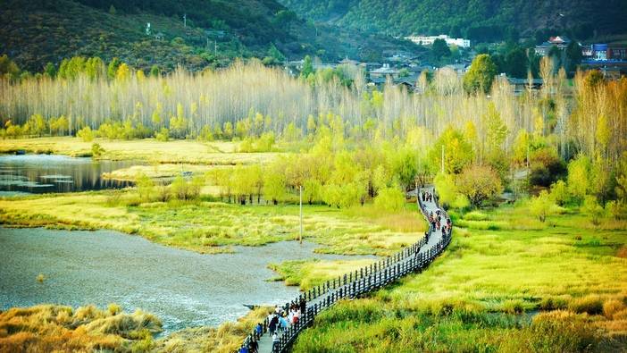 2、其二为【束河古镇】,是茶马古道上保存完好的重要集镇,距今已有1300多年历史,以其古朴的建筑、清澈的泉水和深厚的文化底蕴闻名,核心景区为四方街,青龙桥,飞花触水,九鼎龙潭等景点,酒店打车7Km;