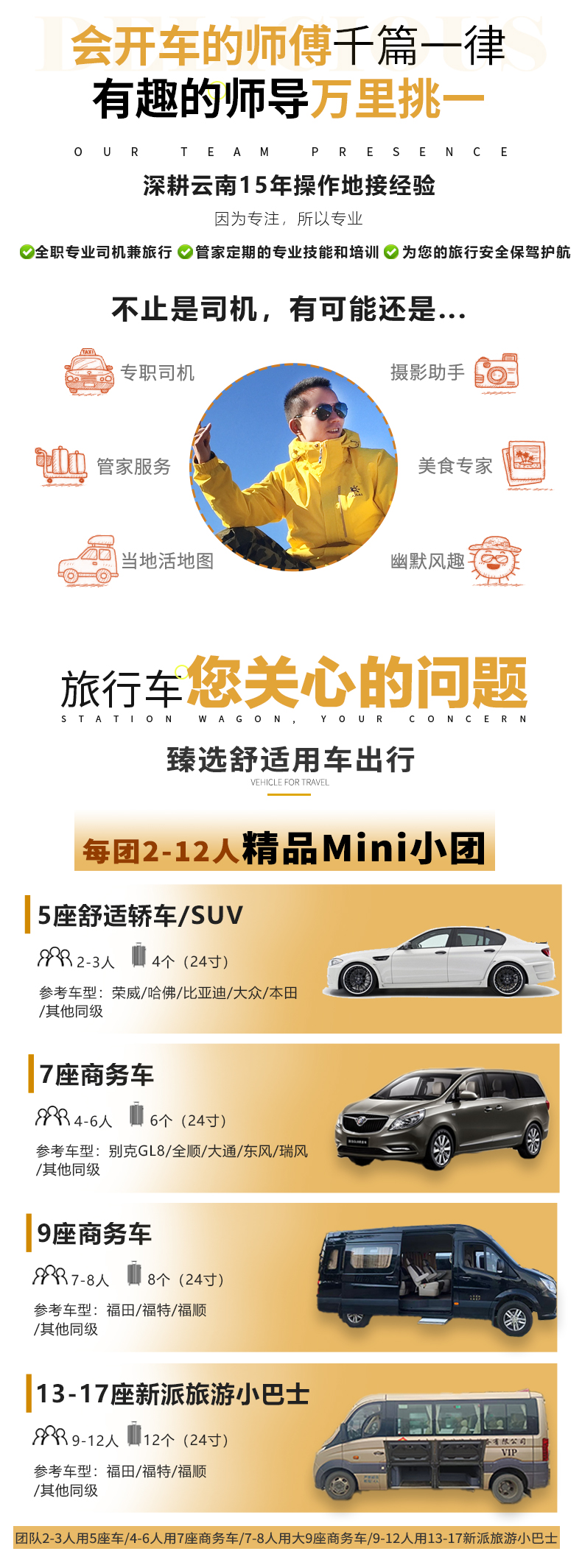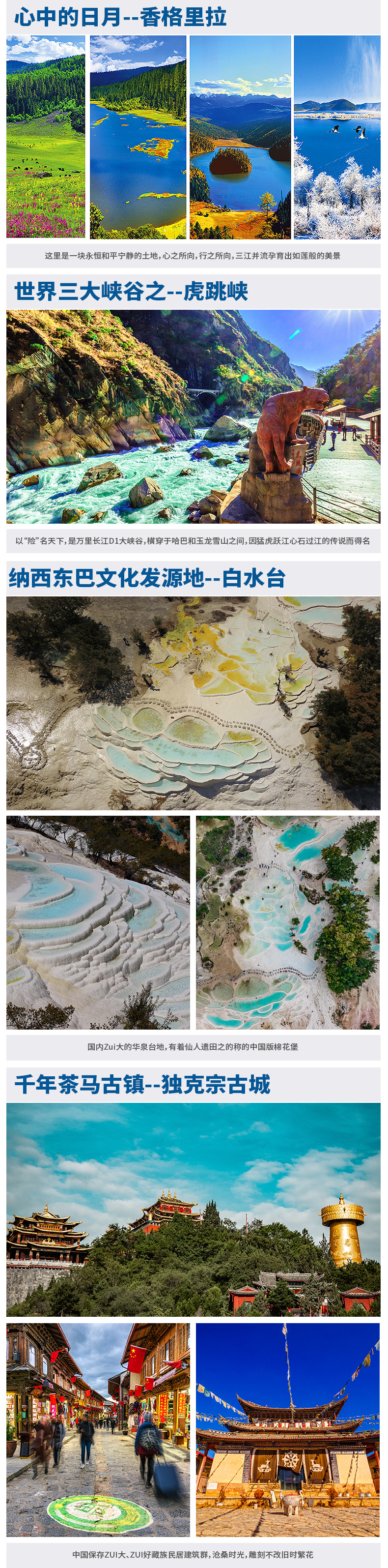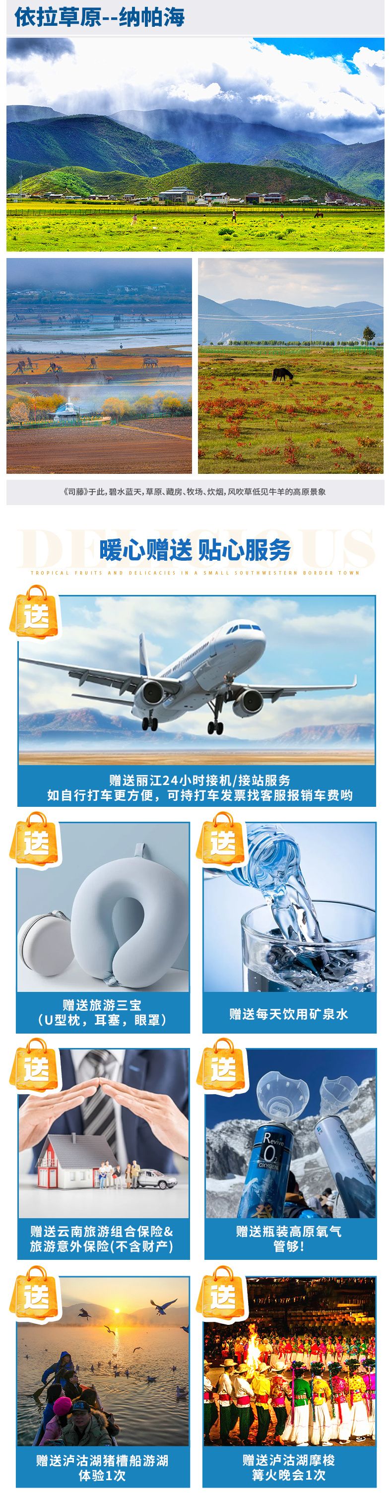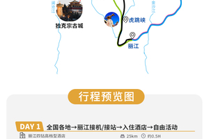 ▷交通:不包含各地到达丽江集散的往返大交通费用(如:机票和高铁火车票等,提前预定通常折扣都会很低);