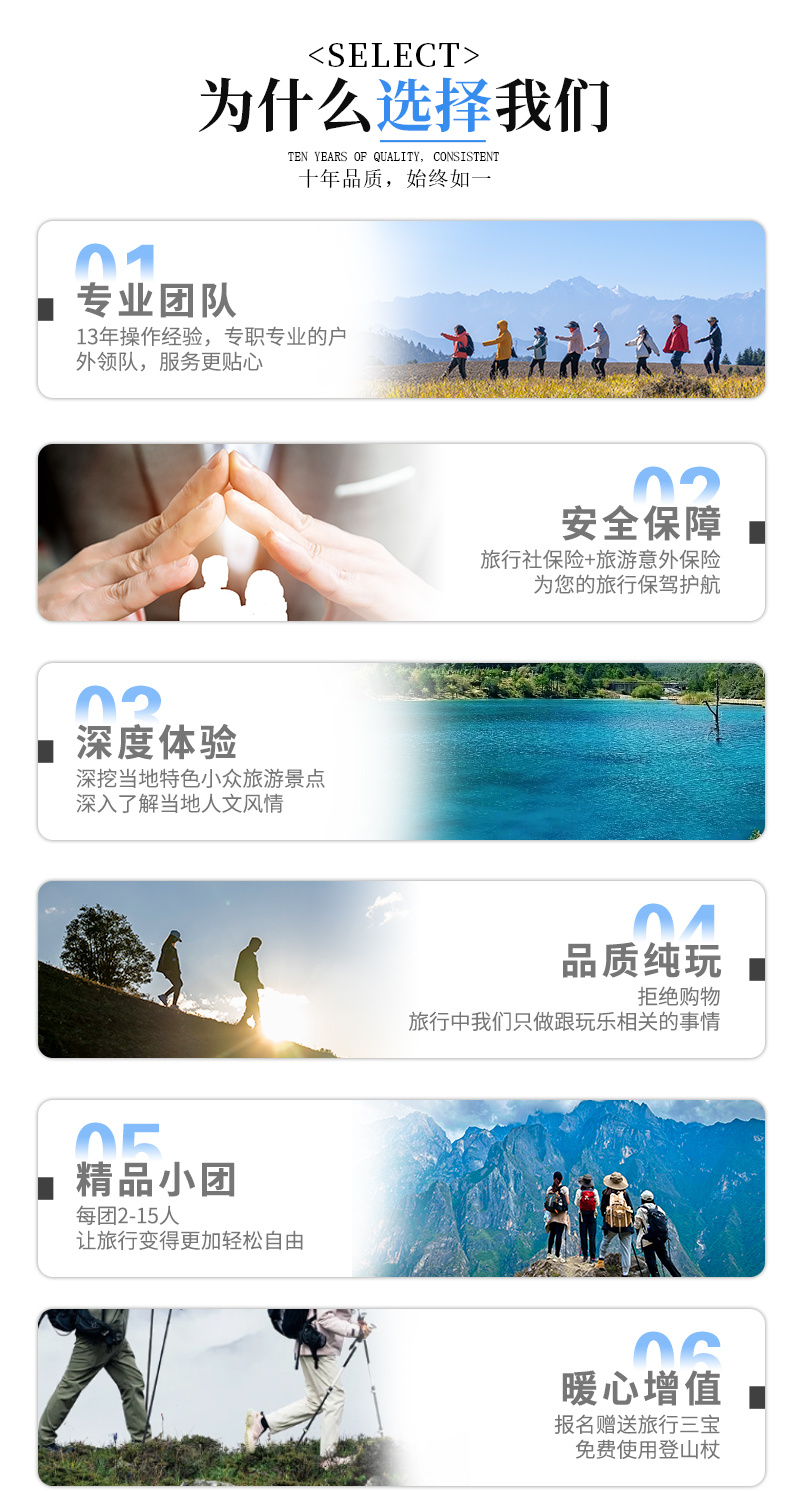● 本活动因涉及户外徒步、长途坐车、刺激项目等情况,报名人需确保身体健康适宜旅游,有高血压、心脑血管疾病、传染性疾病、呼吸系统疾病、精神病、严重贫血病、大中型手术的恢复期病患者、行动不便者、孕妇等情况游客谢绝参加。代他人报名者,须准确了解被报名人的健康情况是否满足本线路要求。