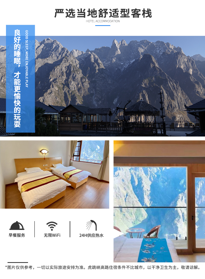 3、住宿:虎跳峡本地湾当地客栈1晚(2-3人标准间);
