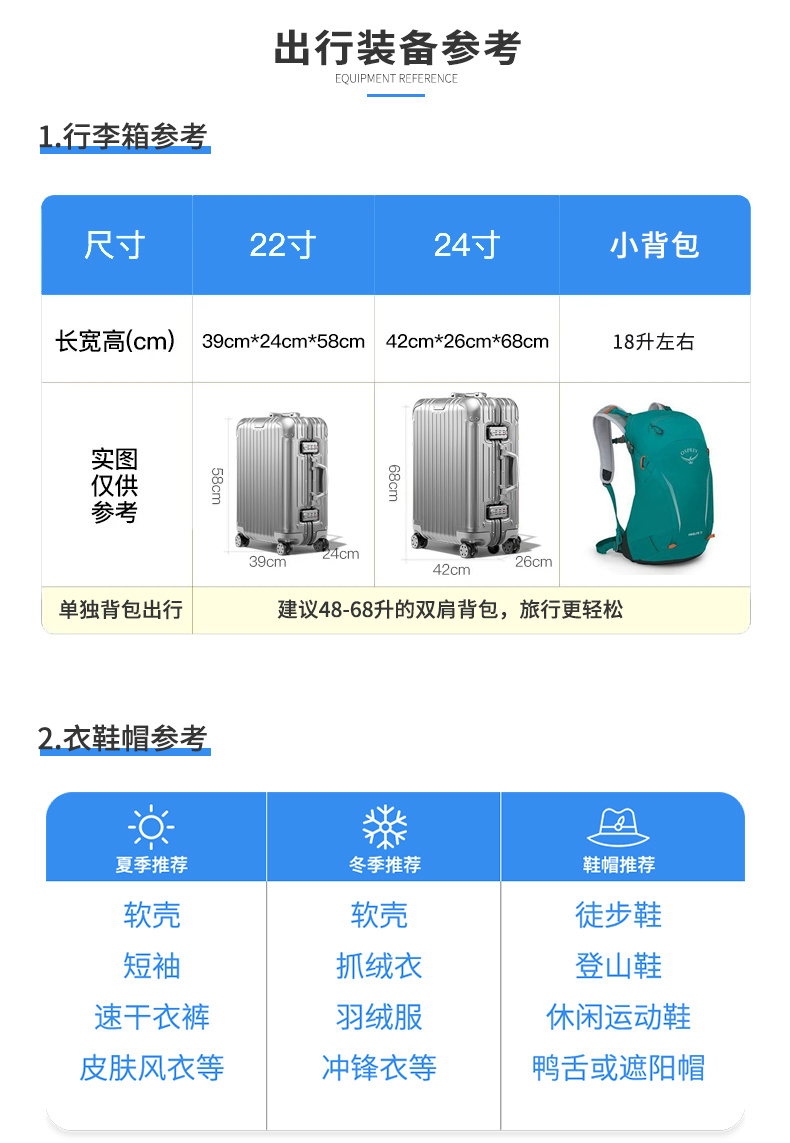 1、赠送每人雨衣、魔术头巾以及免费使用登山杖等(使用后需归还);