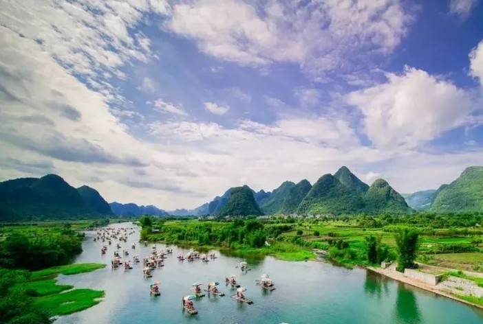 早餐后,前往“阳朔小桂林”之称【遇龙河】开启徒步之行徒步里程9公里左右,用时3小时左右。两岸青山连绵,绿树成行;而若遇晴日,则蓝天白云,碧水绿草,开朗而明快;若逢雨天,更是雾绕云遮,百媚千娇,将阳朔风光表现的淋漓尽致。