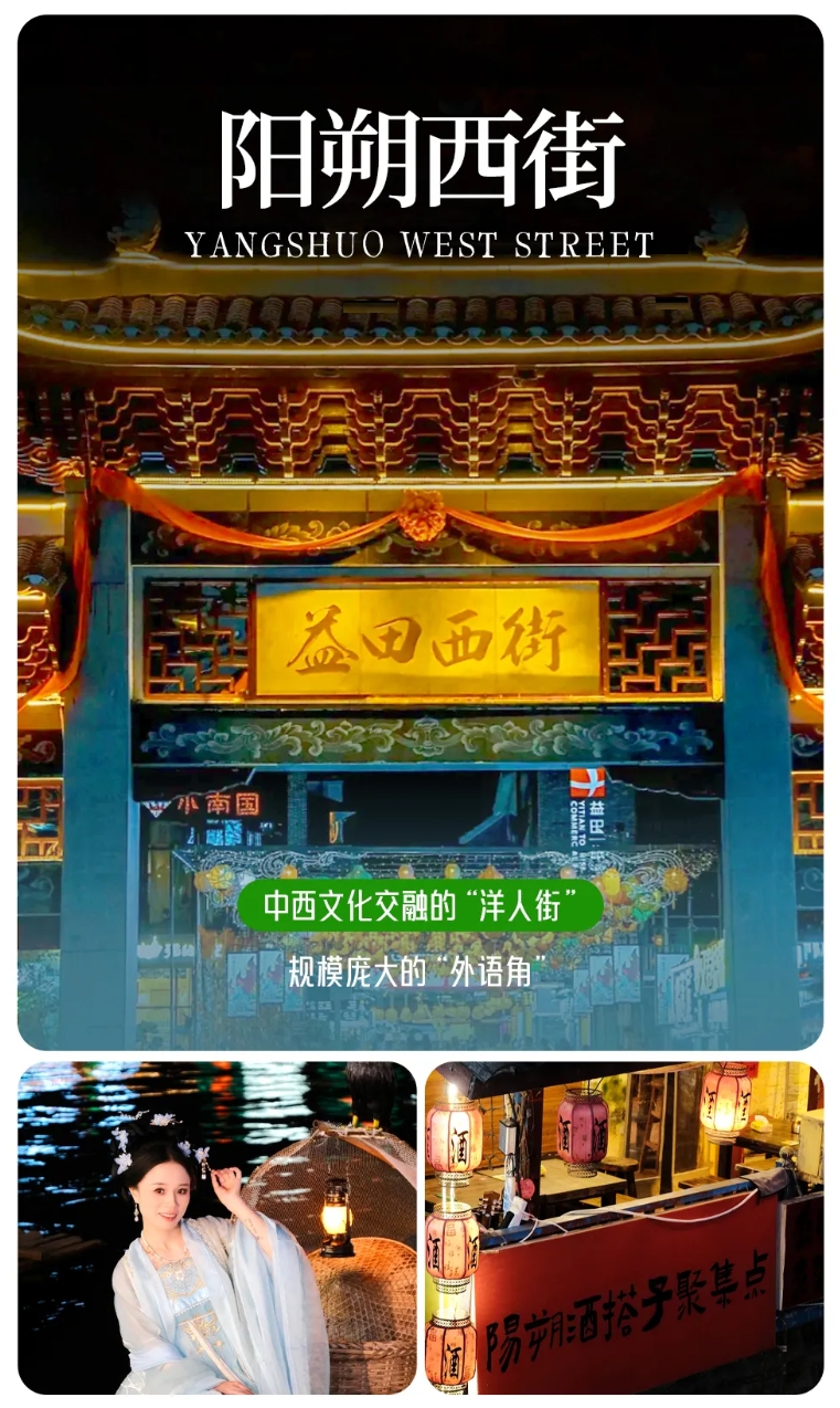 ★★ 自由活动:晚间自由活动期间可自行前往阳朔最著名的街道西街(洋人街),感受浓厚的异域风情。
