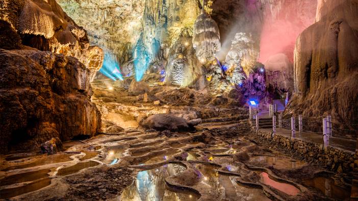 早餐后前往世界第一洞府-织金洞,织金洞以“大、奇、全、美”著称,有石笋、石柱、石芽、钟旗等四十多种堆积物,囊括世界溶洞堆积形态和类别,是洞穴大厅分布密度最大、钟乳石分布密度最高、类型最丰富、珍稀形态最多的洞穴之一,被誉为“溶洞之王”。