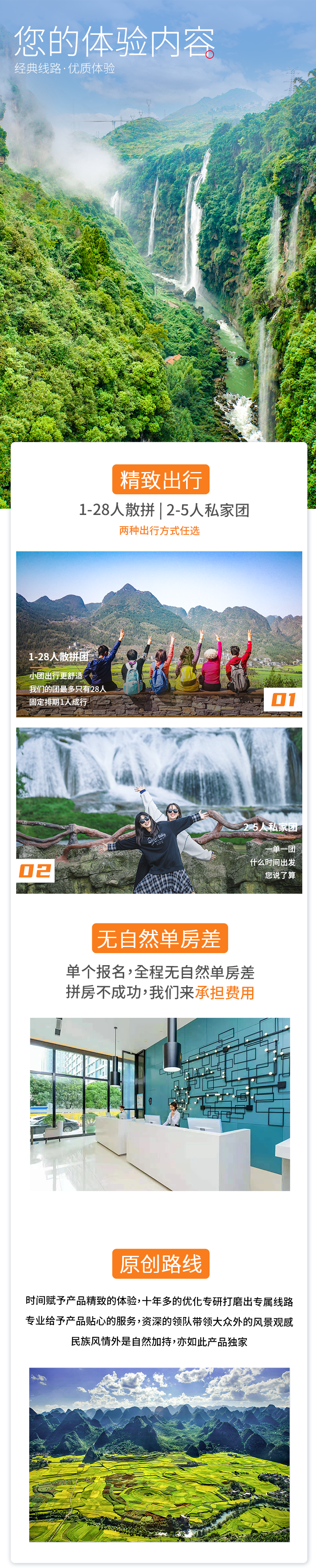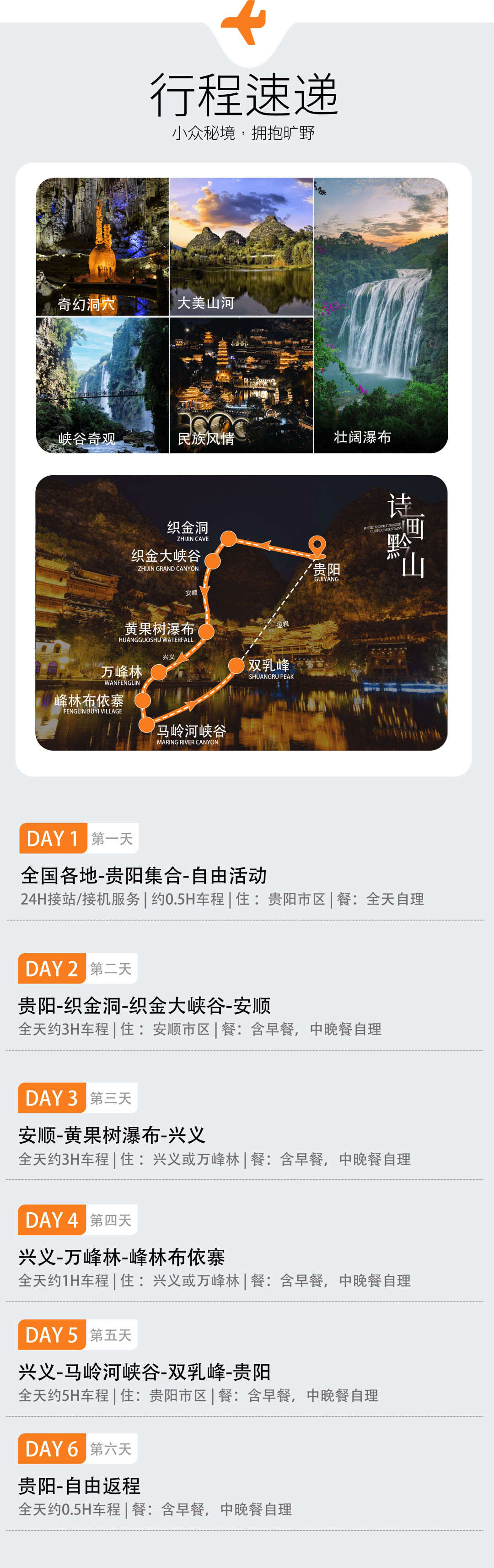 ➃ 其他:费用包含所未提及的任何形式消费(如:黄果树景区扶梯索道、马岭河峡谷电梯等可自由选择消费项目)