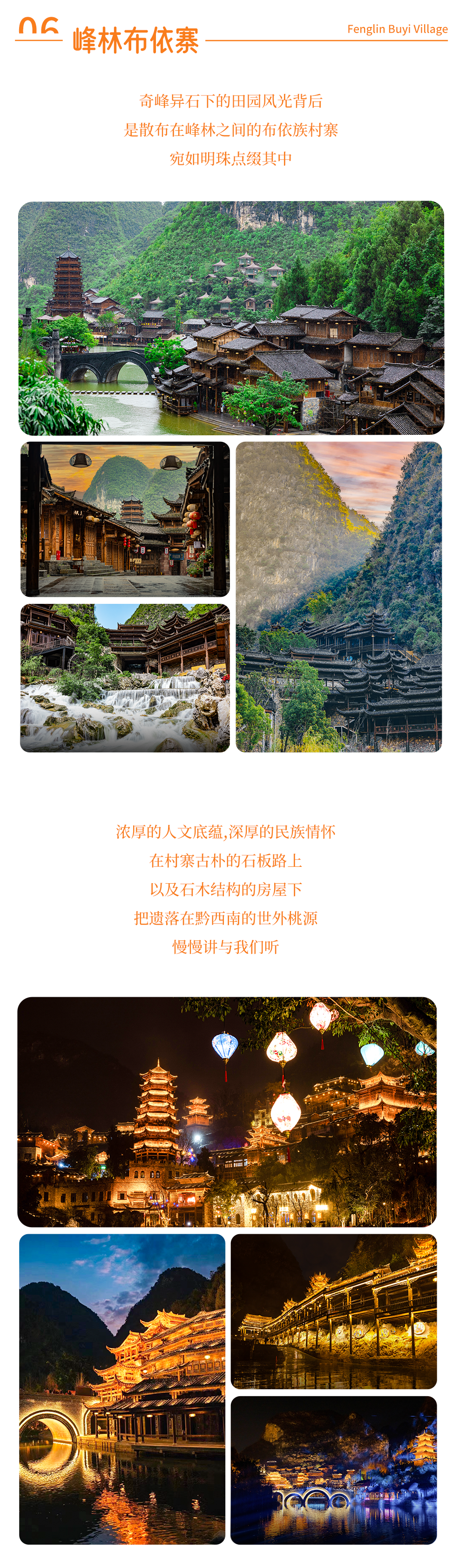 傍晚时分我们前往峰林布依寨,峰林布依寨地处于万峰林的核心地段东峰林之中,是贵州唯一按照布依族村寨打造的风情景区;我们选择了最合适的时间到达,闲逛一会后,峰林布依寨的灯光已然亮起,形成一幅绝美的画卷,欣赏完醉美夜景之后返回酒店休息。