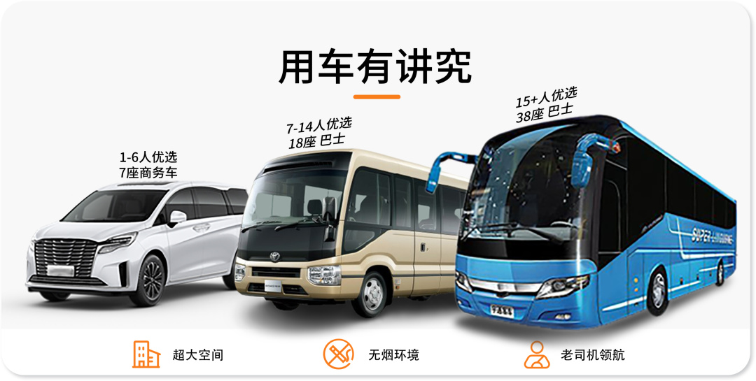 用车:当地行程用车(根据具体人数选配5-38座车型)