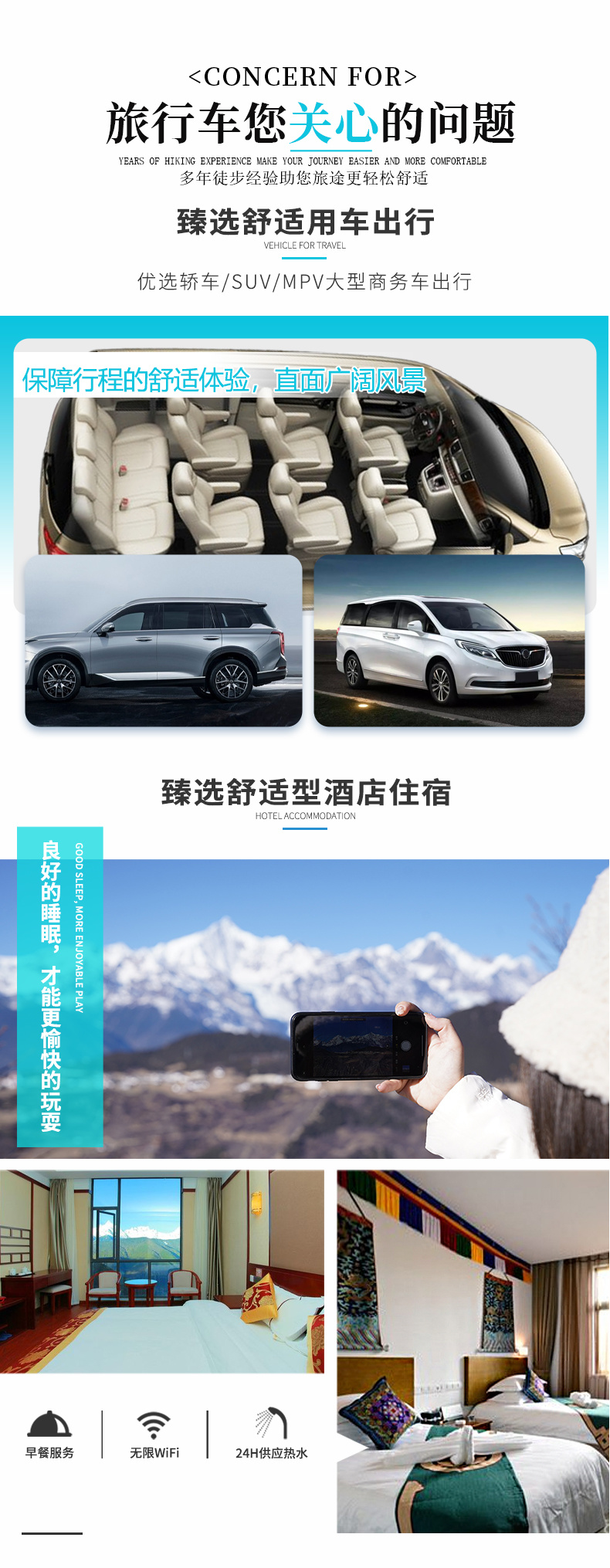 ▷其它:行程内未注明的行程外其它一切个人自由消费项目,如:亚丁景区观光电瓶车往返70元/人,亚丁骑马费用(景区有公示);