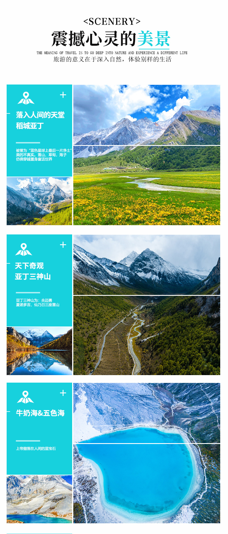 亚丁景区分为长短线,长线为牛奶湖和五色海线,短线为珍珠海线,高原徒步请根据自身体能选择游览线路,当天徒步请提前自行准备好中午路餐,高原徒步考验体力,请根据自身体能情况而定,不可逞强,避免给自己造成不必要的麻烦,敬请知悉。
