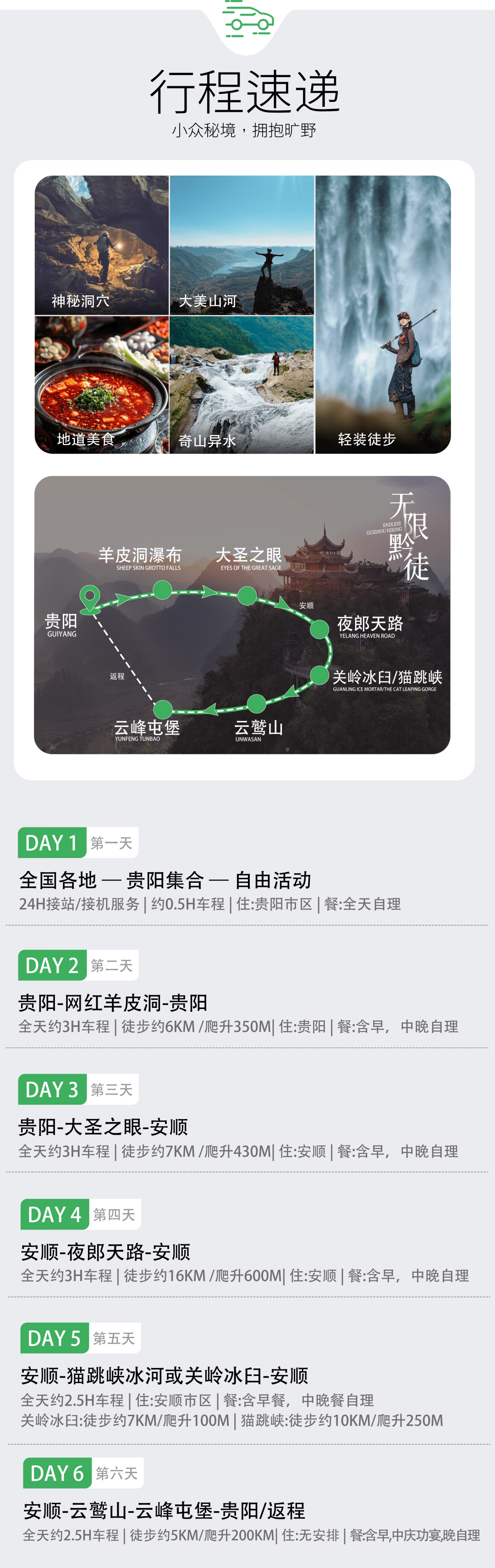 ② 大约下午15:30左右送达贵阳北站、下午16:00左右送达贵阳龙洞堡机场,如当天需要返程的小伙伴一定要购买下午16:30以后贵阳北站返程的高铁动车票或晚上18:00以后龙洞堡机场的返程机票,以免造成赶不上火车或飞机。