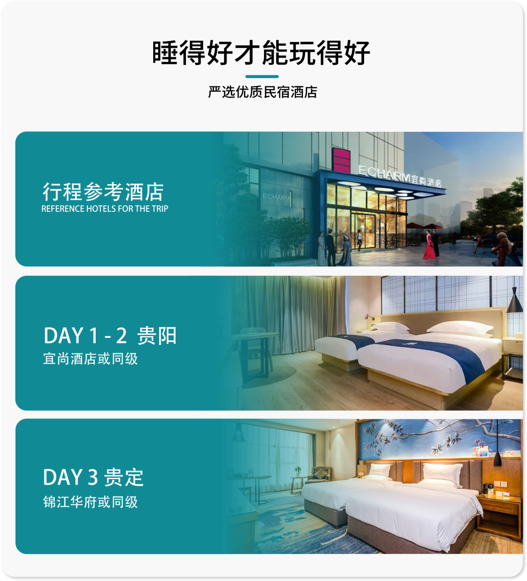➁ 住宿:贵阳2晚+贵定1晚酒店(2人/间)