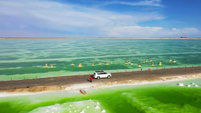 今天是青海到甘肃跨越的一天,前往【大柴旦翡翠湖】,一个被誉为上帝眼泪的地方,景色美如画绝对值得期待,从上俯瞰,就如一颗颗精心加工好的上好翡翠、琥珀绿松石镶嵌在大地上,美的让人心动。