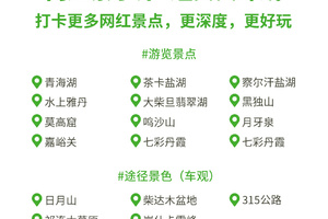 【小交通】青海湖黑马河小交通30元/人,察尔汗盐湖小交通60元/人,水上雅丹小交通60元/人,张掖七彩丹霞小交通38元/人,黑独山小交通60元/人(5.21起开始收取黑独山交通车费用)。