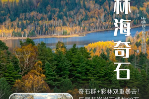 这里是以印支期花岗岩构造峰林地貌和第四纪冰缘地貌、新构造崩塌地貌为代表的地质地貌综合体,是目前国内发现唯一一处类型最齐全、发育最典型、造型最丰富的花岗岩石,呈现出最独特的峰石景观。漫步于亿万年前形成的花岗岩石林奇观之中,怪石嶙峋,千姿百态。每年深秋时节,五彩斑斓的五花山色与冷峻花岗岩峰林的碰撞,更显大自然的鬼斧神工与秋色的浓烈奔放。登顶观光塔, 360° 俯瞰小兴安岭斑斓秋色。