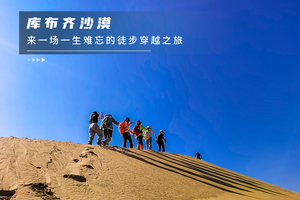 下午|到达库布齐沙漠徒步起点包头人家,领队开始给大家讲解沙漠徒步注意事项,之后开始第一天的沙漠穿越,今天要经过很多种地貌,沙漠行走注意补充营养、水分。基本徒步时间约4-6小时左右到达营地龙头拐。