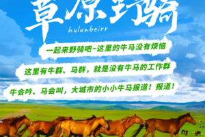 - 早餐后整理装备出发,向草原深入骑行。感受蓝天白云,万亩草原的辽阔,近距离观赏白桦林,情侣树许愿,湿地景观,近距离观赏鸿雁、马群、天然湖。
