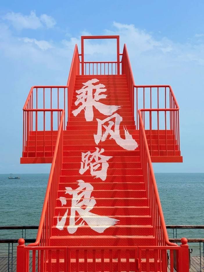 “向海风许愿,在山海相见”“风吹又日晒,自由又自在”……微笑路上的一道道橙白相间的标语,是看在眼里的诗意,是踩在脚下洒脱。与红白色的灯塔相得益彰,一个象征自由,一个寓意远方。网红打卡地“微笑路”和“灯塔”就在邴家湾。