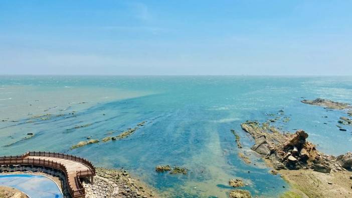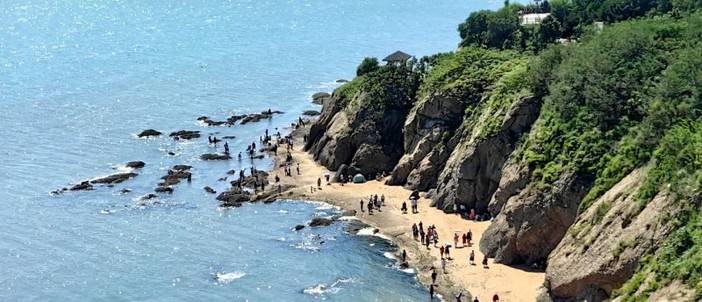 行走在龙回头的景观台和木栈道上,周遭松涛起伏,这里高于海平面近百米,陡峭的悬崖下是澎湃的浪涛,远处海天相连,海滨浴场清晰可见,在这里能真正体会到大海的广阔。
