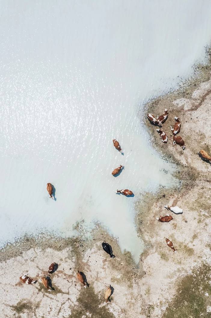 太仆寺旗“牛奶湖”——锡林郭勒草原的隐秘珍珠。比起千篇一律的蓝绿色湖泊,这片奶白色的巴彦查干湖简直像被大自然加了柔光滤镜。牛奶湖的奇异色泽源于湖底特殊的矿物质沉积与光线折射,晴日里湖水泛着莹润的奶蓝色,阴天时则化作朦胧的月白色。湖面随季节变幻——夏季丰水期如一块温润玉石,秋季水位下降露出乳白色的湖岸结晶,冬季封冻后则形成裂纹交错的“牛奶冰原”。