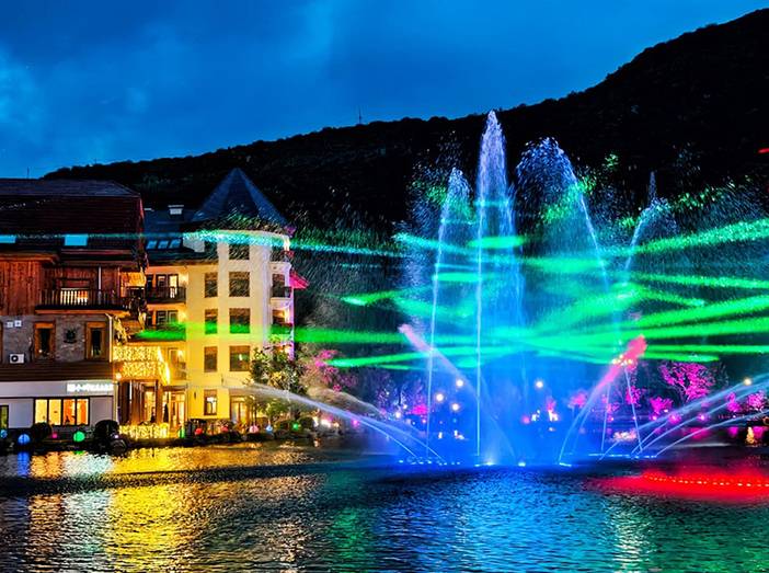 可乘坐观光缆车登顶,在天空之梯拍出绝美大片,还能将小镇全景尽收眼底。漫步风铃乐谷,欧式建筑环湖而立,音乐喷泉开启时如梦如幻。带娃的话,白熊之家儿童乐园不可错过,3000 平米超大场地,让大家尽情撒欢。
