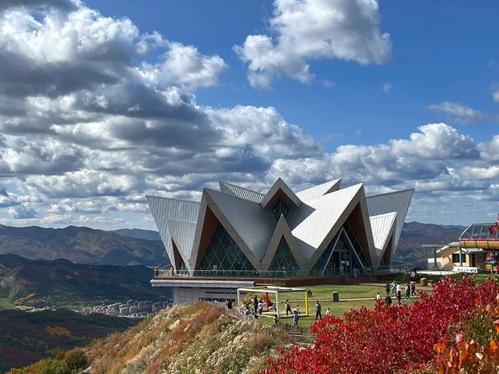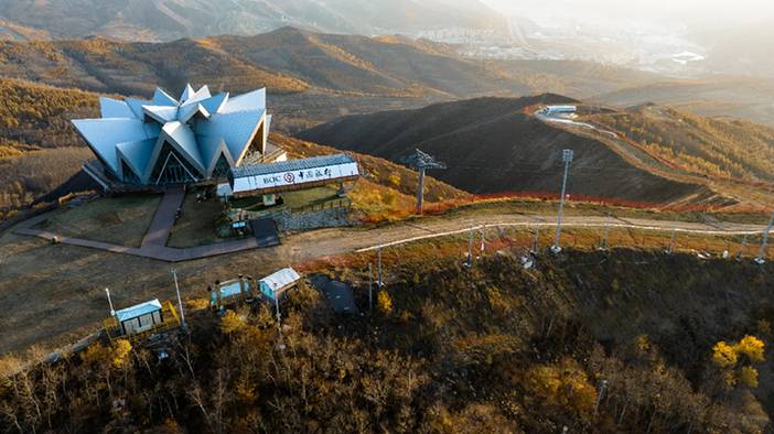 云顶滑雪公园位于张家口市崇礼区密苑云顶乐园内。乘缆车跃入密苑云顶的秋日幻境,仿佛闯入天神私藏的调色盘!乘坐缆车(或徒步)到达山顶金花阁,向北(云顶滑雪公园)方向出发,途经云顶滑雪公园>云顶丽苑>云顶世界。