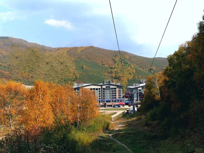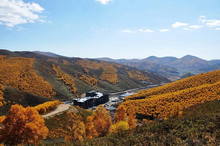 位于河北张家口市崇礼区,地处冬奥核心地带,度假区占地 78 平方公里,森林覆盖率高达 85.7%,自然资源丰富,由翠云山银河滑雪场、长城岭银河滑雪场、翠云山森林风景区、翠云山奥雪小镇等核心板块组成。乘坐索道缆车,随着高度攀升,翠云山的全貌逐渐在脚下铺展开来。缆车穿越层林尽染的秋色画布,山顶云海与白桦林共舞,清风从车窗拂过,送来丝丝凉意,惬意十足~