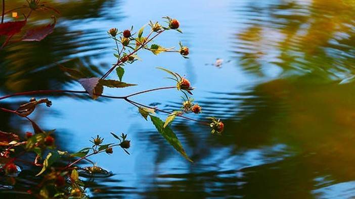 干沟,可见百里山水画廊之标牌、为官方确定的画廊起点。这里依山傍水,环境清幽,湖水清澈,里面长了不少水草。