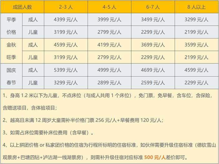 成人:3399元/人,儿童:2199元/人