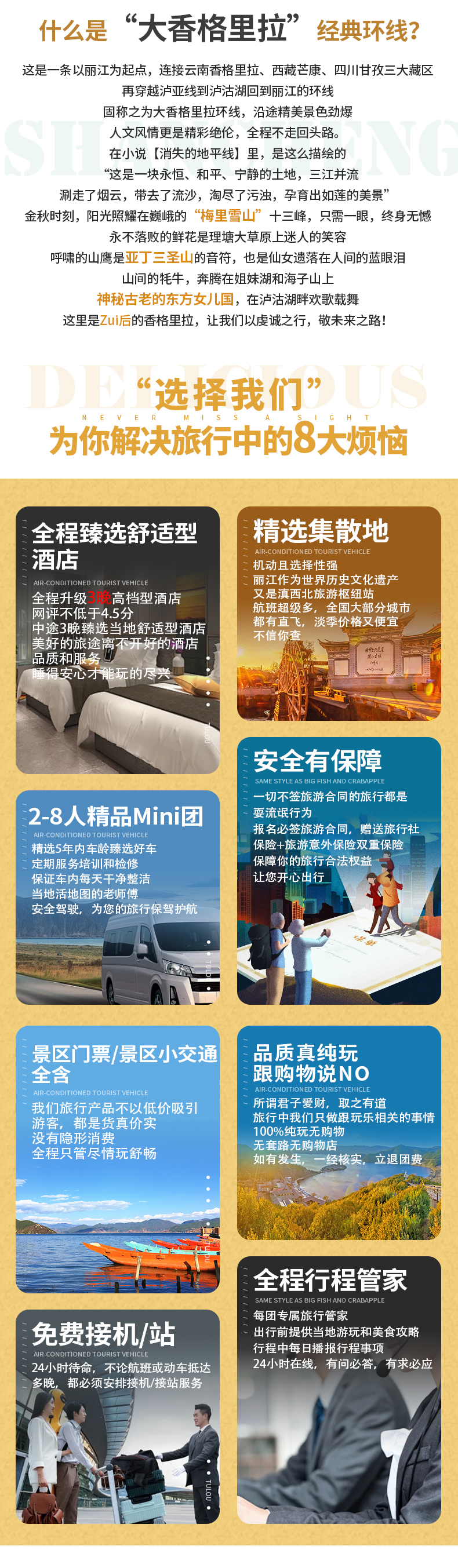 ▷交通:不包含各地到达丽江集散的往返大交通费用(如:机票和高铁火车票等,提前预定通常折扣都会很低);