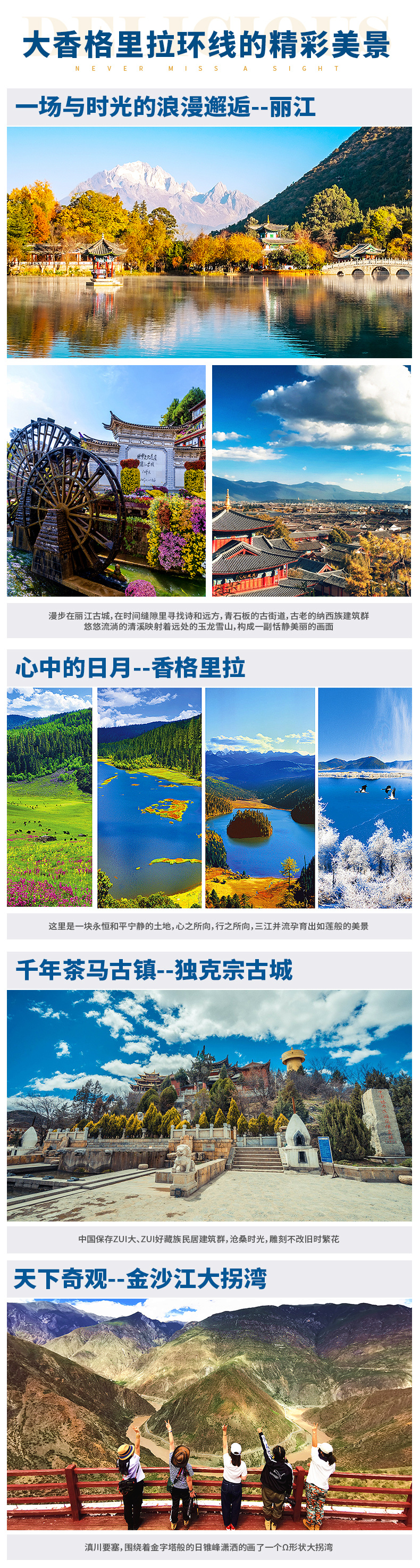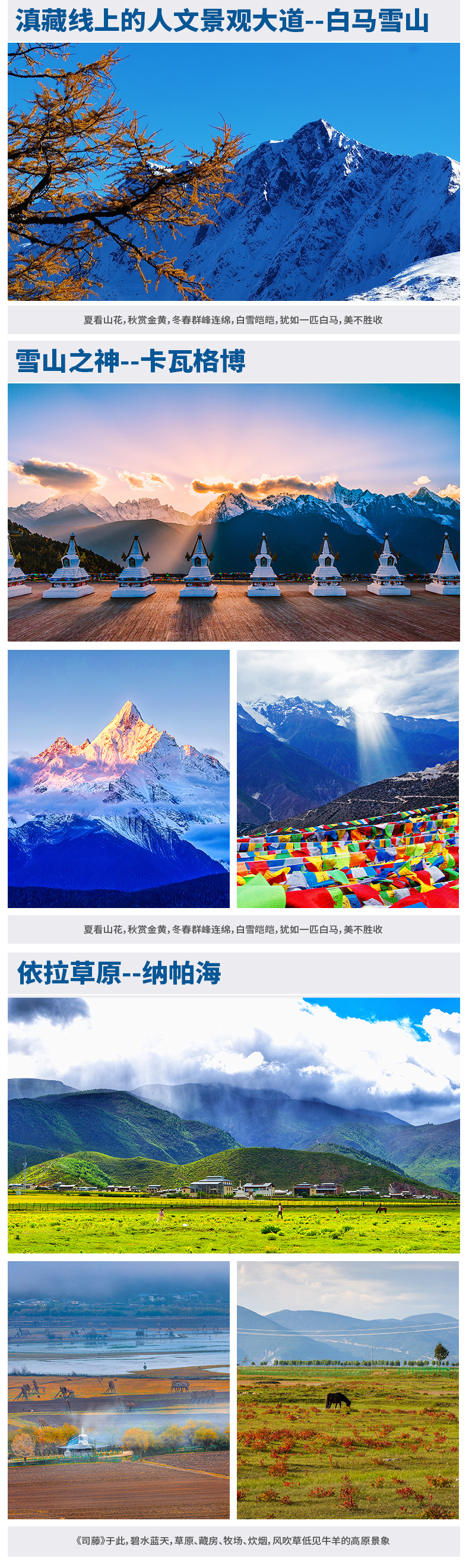 丽江→独克宗古城→依拉草原→金沙江月亮湾→白马雪山→飞来寺