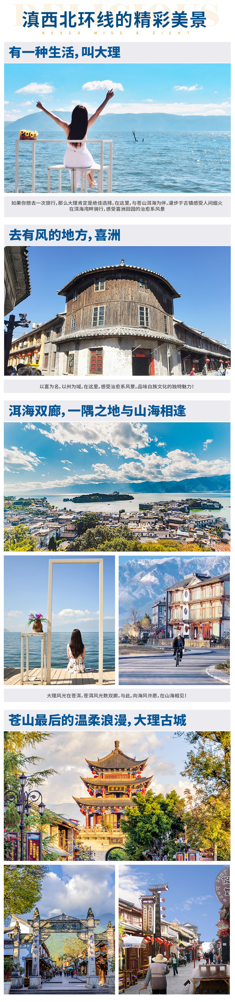 游览完古城后沿洱海环海西路前往生态走廊前往【网红S湾】,尽情美拍,或可自行漫步于生态走廊;欣赏洱海无限风光,绝对让您不虚此行。这里纯净的蓝天,清澈的洱海,走进这里,你不用去爱琴海,也可以感受一样的浪漫。随后沿环海西路抵达【喜洲古镇】,游览喜洲田园风光,打卡转角楼,漫步在古镇里尽享闲暇时光。