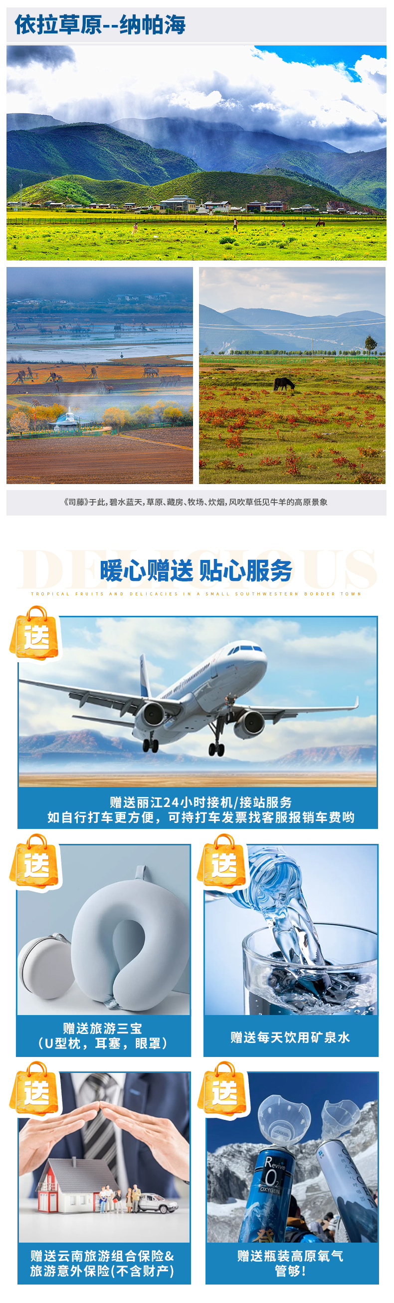 ▷交通:不包含各地到达丽江集散的往返大交通费用(如:机票和高铁火车票等,提前预定通常折扣都会很低);