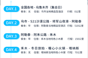 1. 新疆地域宽广,每天的行车时间比较长,请提前做好准备哟。另外为了避免肚饿,可以自备一些小零食。