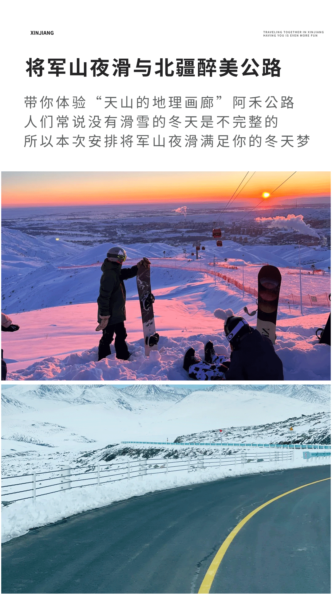 第二天:乌鲁木齐-S21沙漠公路-510KM-将山日落派对-夜场滑雪体验-阿勒泰