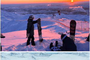 下午抵达阿勒泰,前往阿勒泰将军山滑雪场,阳光西下,粉雪披上了霞光,落日的余晖映照着滑雪道,构成了一幅美丽的画卷。参加派对的雪友们在DJ音乐的伴奏下带着欢笑尽情舞动,时而跳动着,时而欢呼着,仿佛在用最佳的方式迎接冬日的魅力。当夜幕降临,雪道两侧的灯光依次亮起,洁白的雪道与灯光交相辉映,一个个“全副武装”的滑雪爱好者从雪道飞驰而下,尽享速度与激情。
