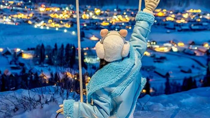 今日冬恋双湖8日之旅正式开启!早起乘车出发,沿着新疆首条沙漠高速公路——S21阿乌高速,一路向北穿越古尔班通古特沙漠。冬季的公路两旁,沙漠被白雪覆盖,形成 “雪裹黄沙” 的独特景观,途中在克拉美丽沙漠公园停留拍照。抵达雪都阿勒泰后前往将军山,坐着缆车上山,随着海拔升高,城市灯光像打翻的星河在脚下铺开,当夕阳跌进阿尔泰山的怀抱,粉橘色天际线从雪道尽头晕染整座雪场化作流动的金色油画,听着耳边动感的音乐,人世间的浪漫莫过于此。后前往酒店入住。
