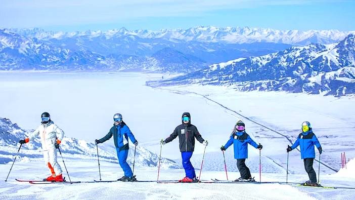 早餐后前往赛里木湖,冬季的赛里木湖,湖面冰封,在阳光照射下呈现出梦幻的蓝冰质感,仿佛一块镶嵌在雪山间的巨大蓝宝石。中午在精河品尝精河招牌美食 ——“奔跑的肉饼子”。外皮酥脆,内馅由牛肉、洋葱等调制而成,鲜嫩多汁,配上一碗热气腾腾的粉丝汤,冬日的严寒仿佛都被驱散干净,吃饱喝足后前往前往赛里木湖国际滑雪度假区(雪票费用自理),这里是亚洲海拔最高的滑雪场(3500米+),滑雪道依雪山而建,滑行时可将整片赛湖全景纳入视野,体验 “在云端滑雪” 的极致感受。滑雪结束后,我们将沿湖游览,当夕阳缓缓落下,将天空染成橙红与金黄,湖面的蓝冰也随之变色,大家围坐在一起,享用一顿热气腾腾的高山火锅,搭配新疆特色歌舞,在冰雪中点燃热情。用餐结束后,前往景区附近酒店入住。