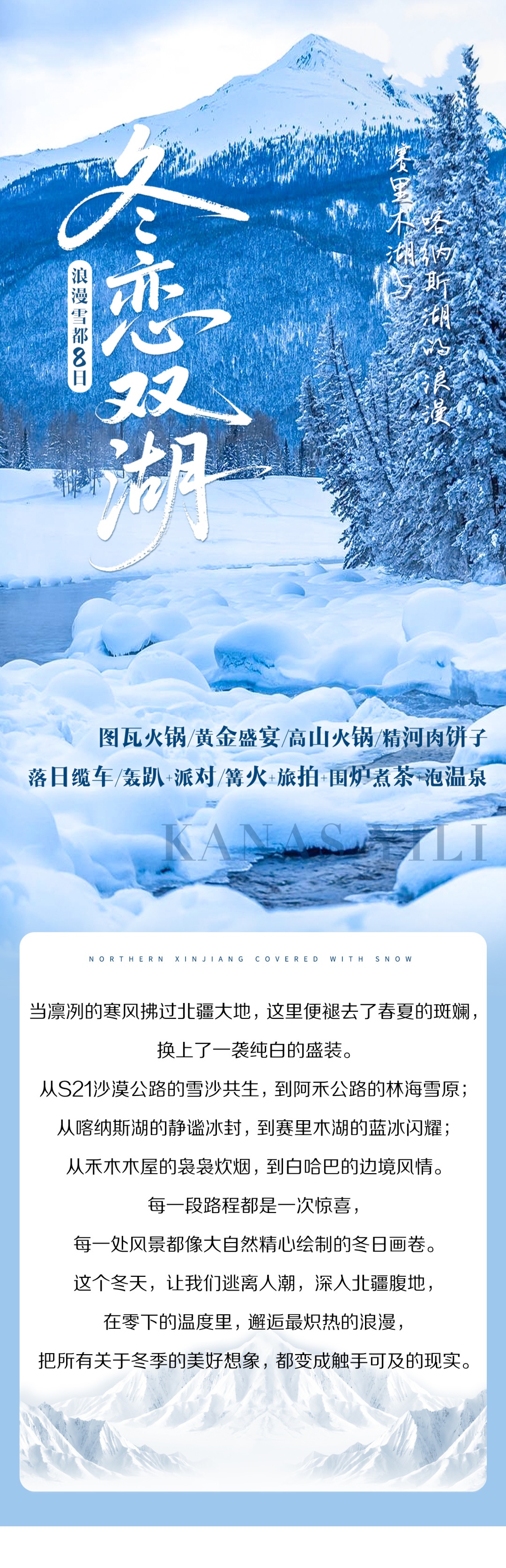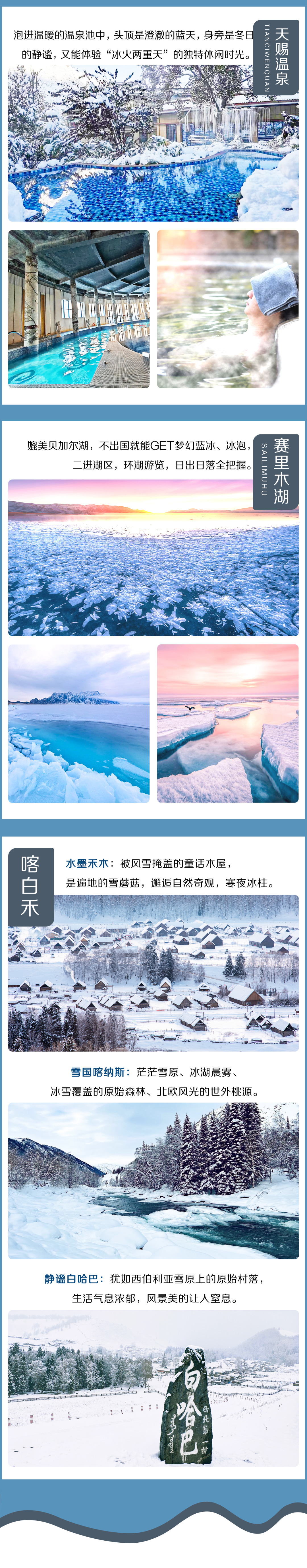 4.禾木、喀纳斯、白哈巴山区冬季气温较低,气候严寒,如遇水管冻裂、大雪压断电线,临时断水断电等特殊情况,请以平常心对待。