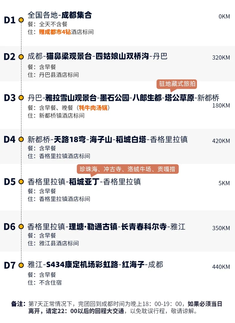 (2)大美稻亚沿途用餐以川菜为主,但因为路况原因,很多时间不能正点用餐,请自备干粮。