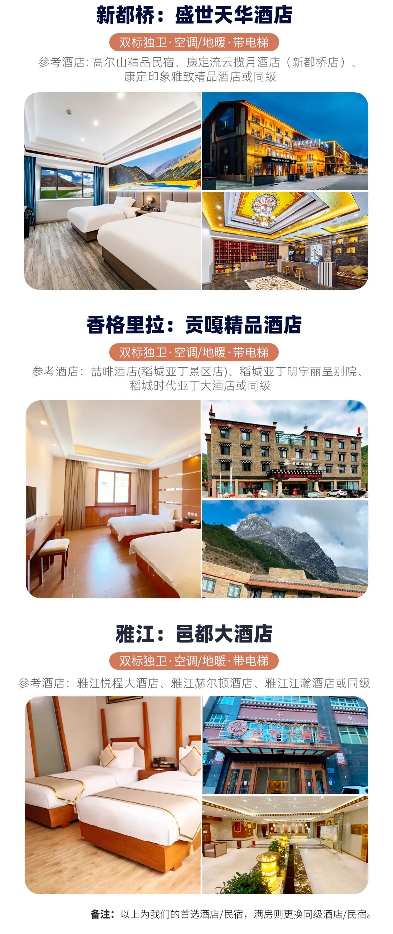 (3)如遇个别酒店,没有电梯和提行李服务,敬请自理;