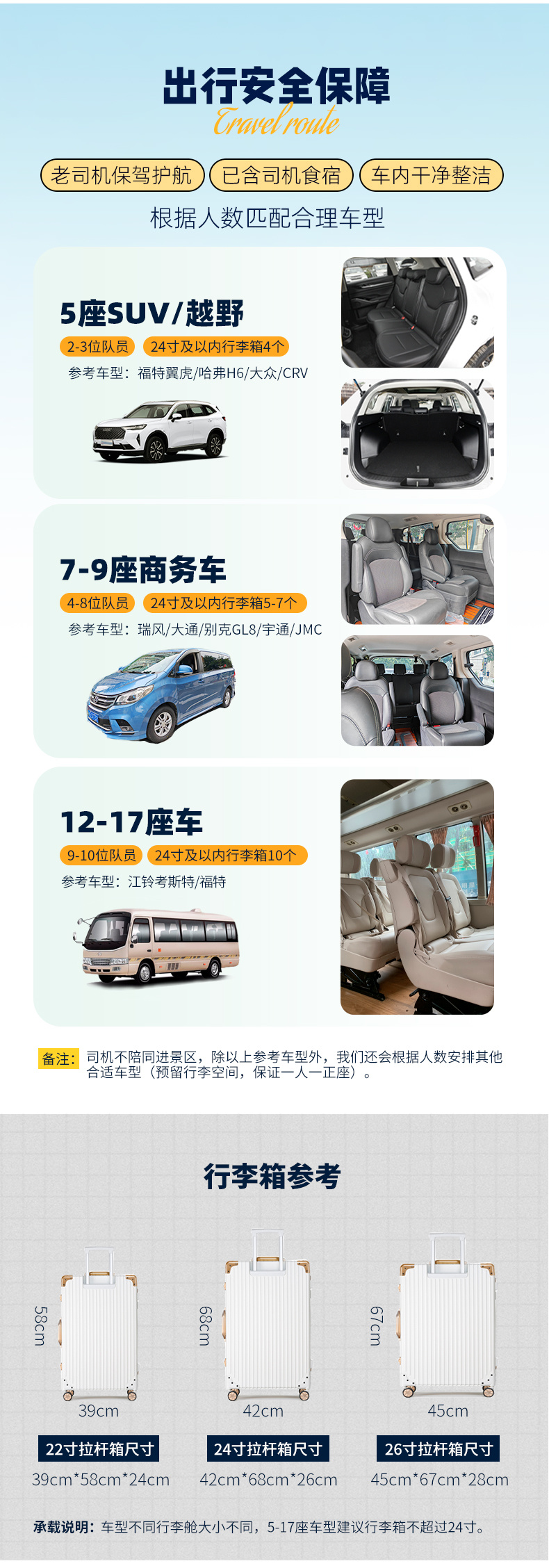 2-3位队员乘坐5座SUV/越野;