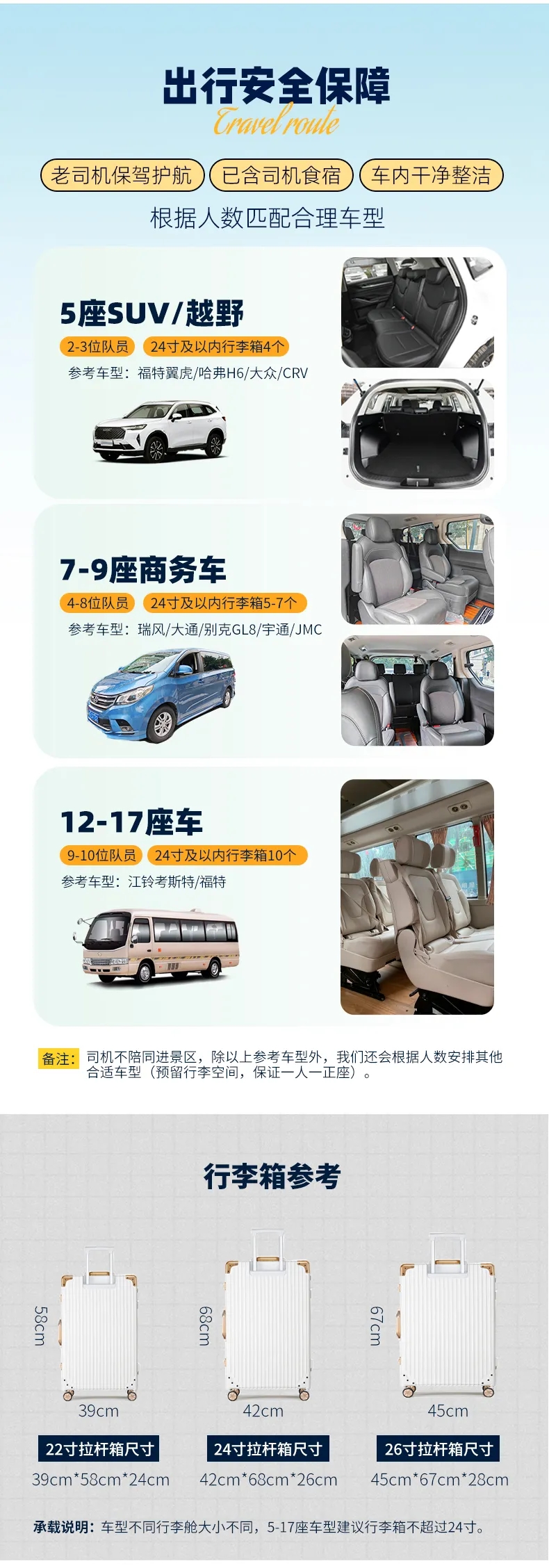 (3)如遇个别酒店,没有电梯和提行李服务,敬请自理;