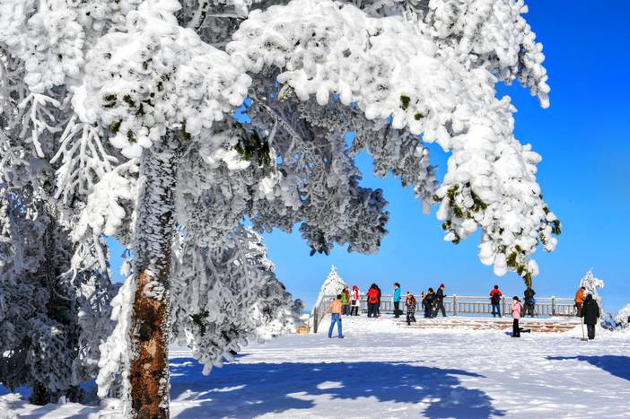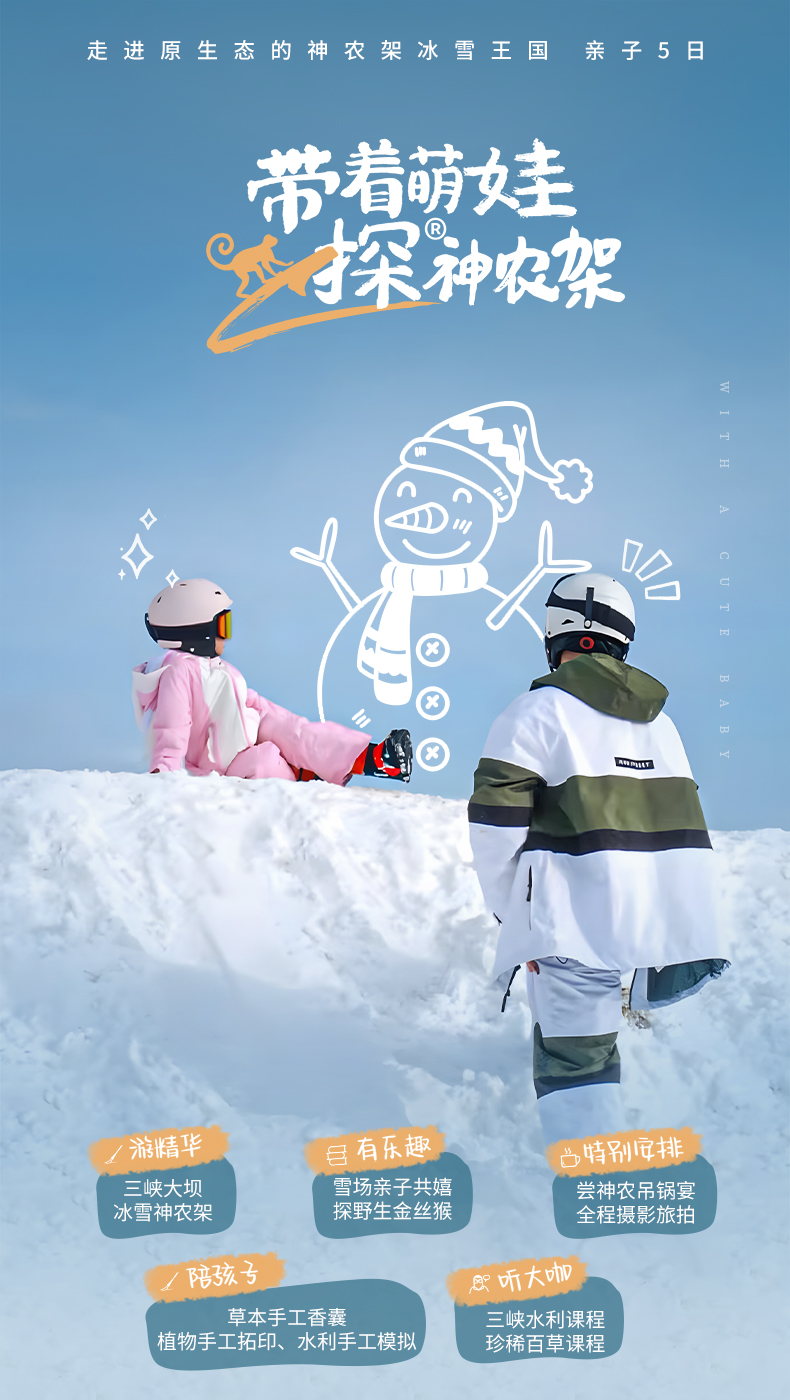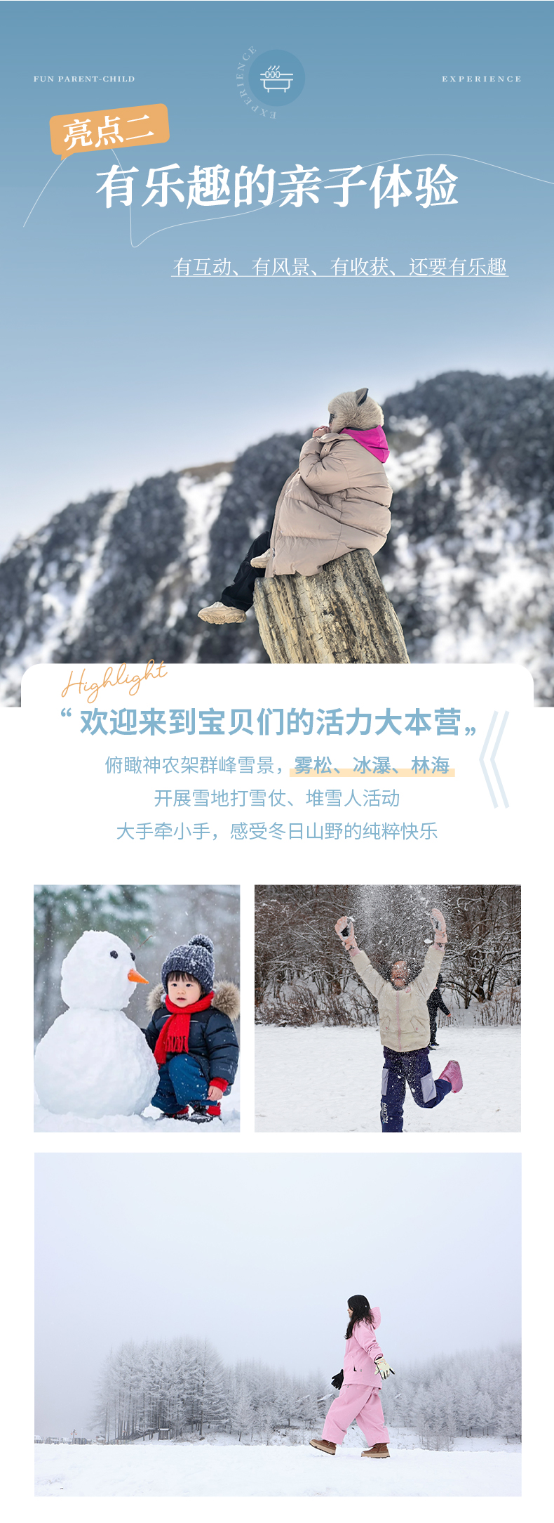 在科研人员的带领下近距离接触这群野生金丝猴,这里可是不对游客开放的哦~随后前往【神农顶】,站上神农架制高点--【华中第一瞭望塔】,俯视神农架林区凌冽而壮阔的雪景。随后,在神农顶开展堆雪人,打雪仗等玩雪活动。飞溅的雪沫里藏着最纯粹的快乐,定格冬日专属的雪白记忆。