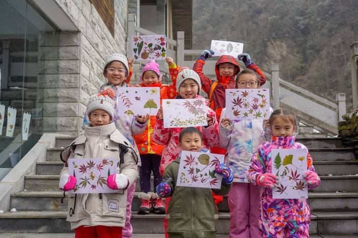 上午前往【官门山】,沿途亲子导游带领我们探访精讲地质馆+植物馆+生物馆+科考馆四大博物馆,了解北纬30°这片密林的前世今生,解密物种多样性的基因密码。并探访国宝大熊猫奥运,打卡岩壁蜂巢参观完后在馆内由研学老师带领体验【手工植物拓印课程】;