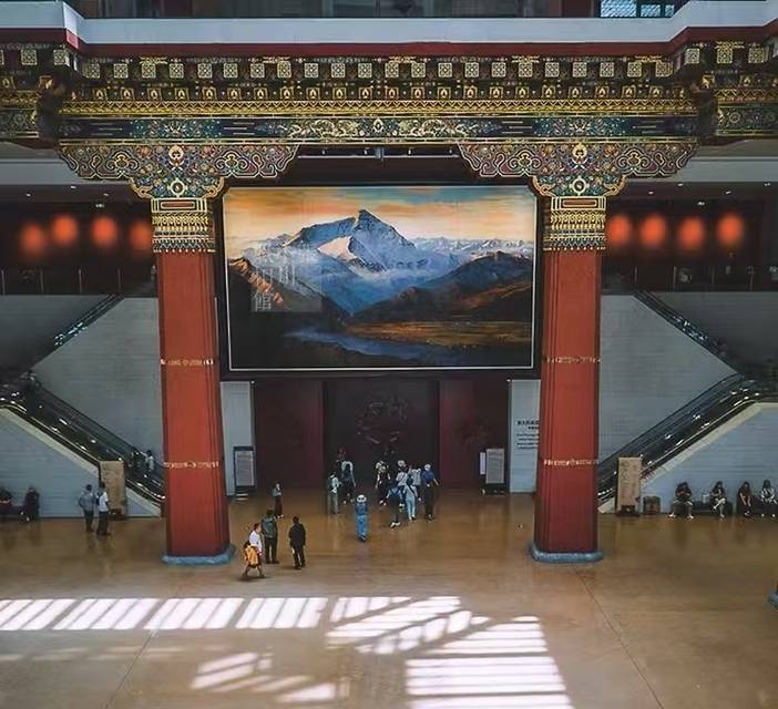 随后驱车前往西藏博物馆展厅由史前文化、不可分割的历史、文化艺术、民俗文化四大部分组成。 史前文化展厅向人们展示了,早期在藏北海拔四千米发掘的用以日常生活的石片、石核等旧石器工具,以及在昌都出土的石锛、石斧、石凿和新石器时代晚期的石簇、骨锥、骨针和各种红陶、灰陶、黑陶器具,完整地再现了西藏步入文明社会前具有代表性的时代进程——旧石器时代、新石器时代、青铜时代和铁器时代。
