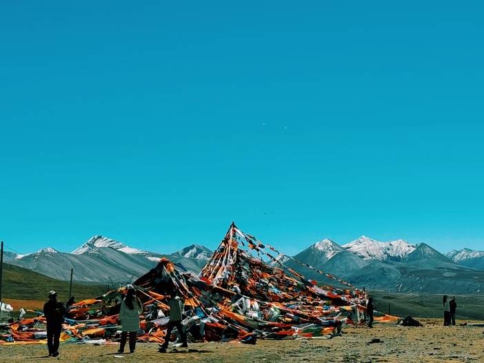 7).垭口挂经幡,撒龙达:感受藏传佛教的虔诚信仰。
